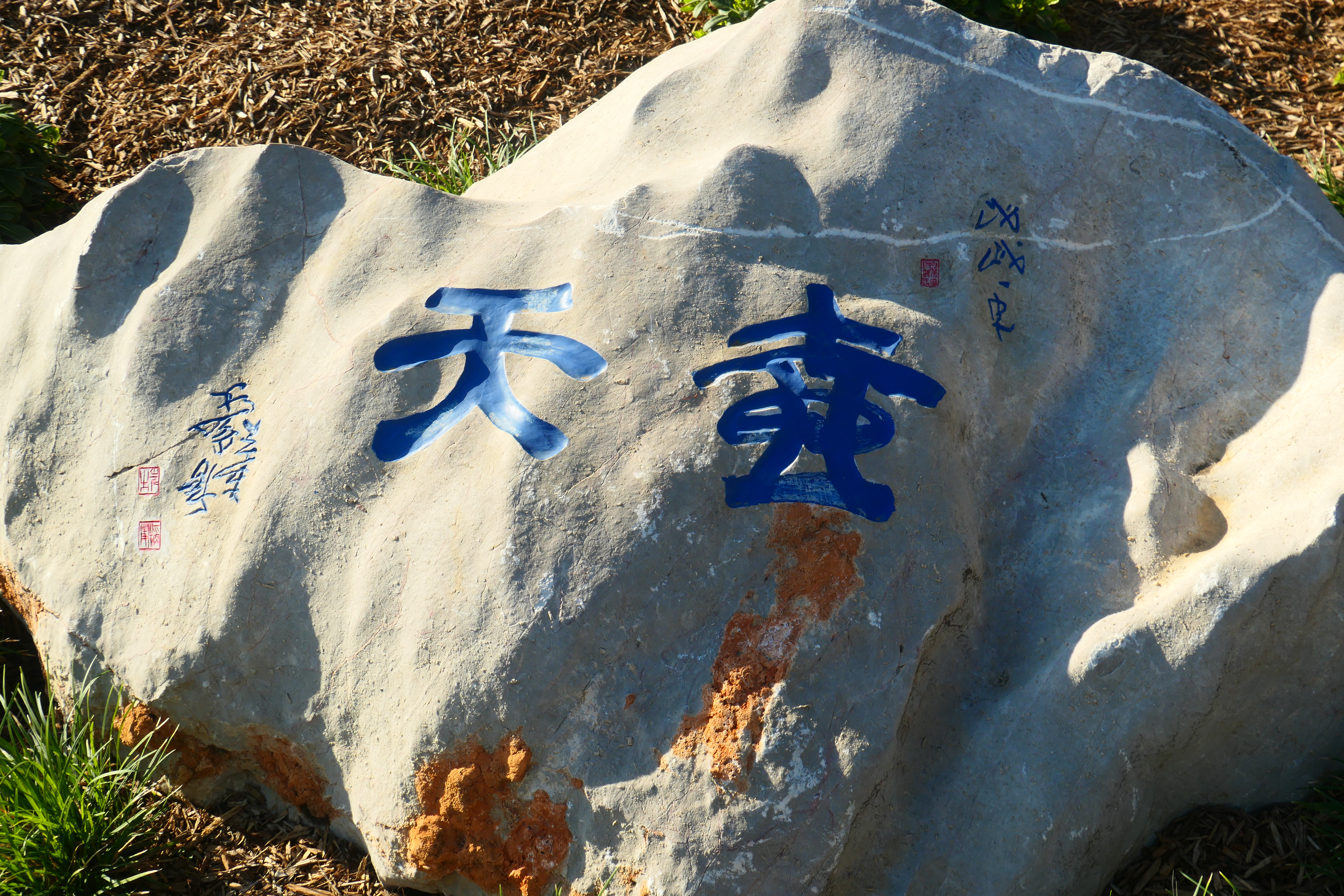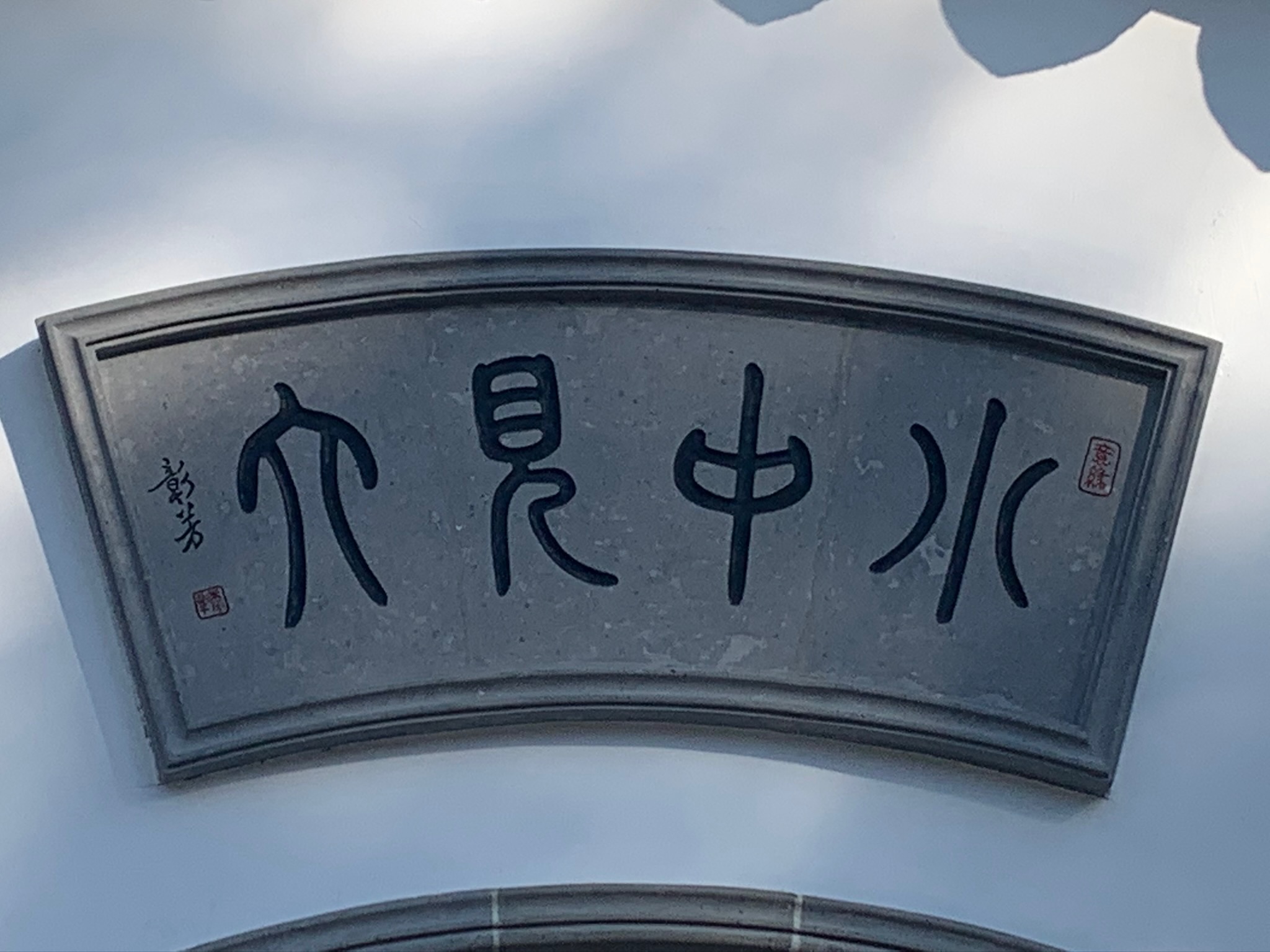 Rocks and poetry, beautiful calligraphy and the buildings are so harmoniously arranged