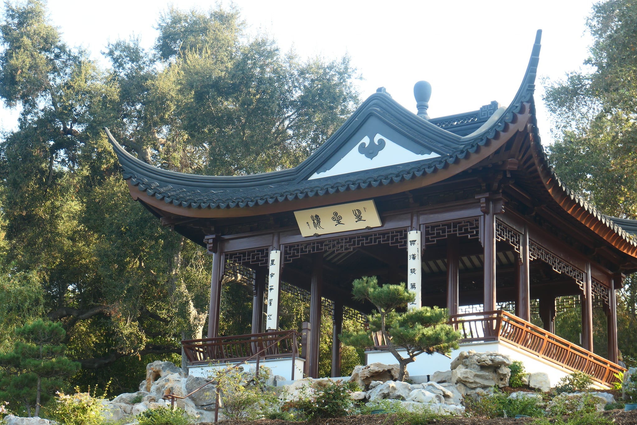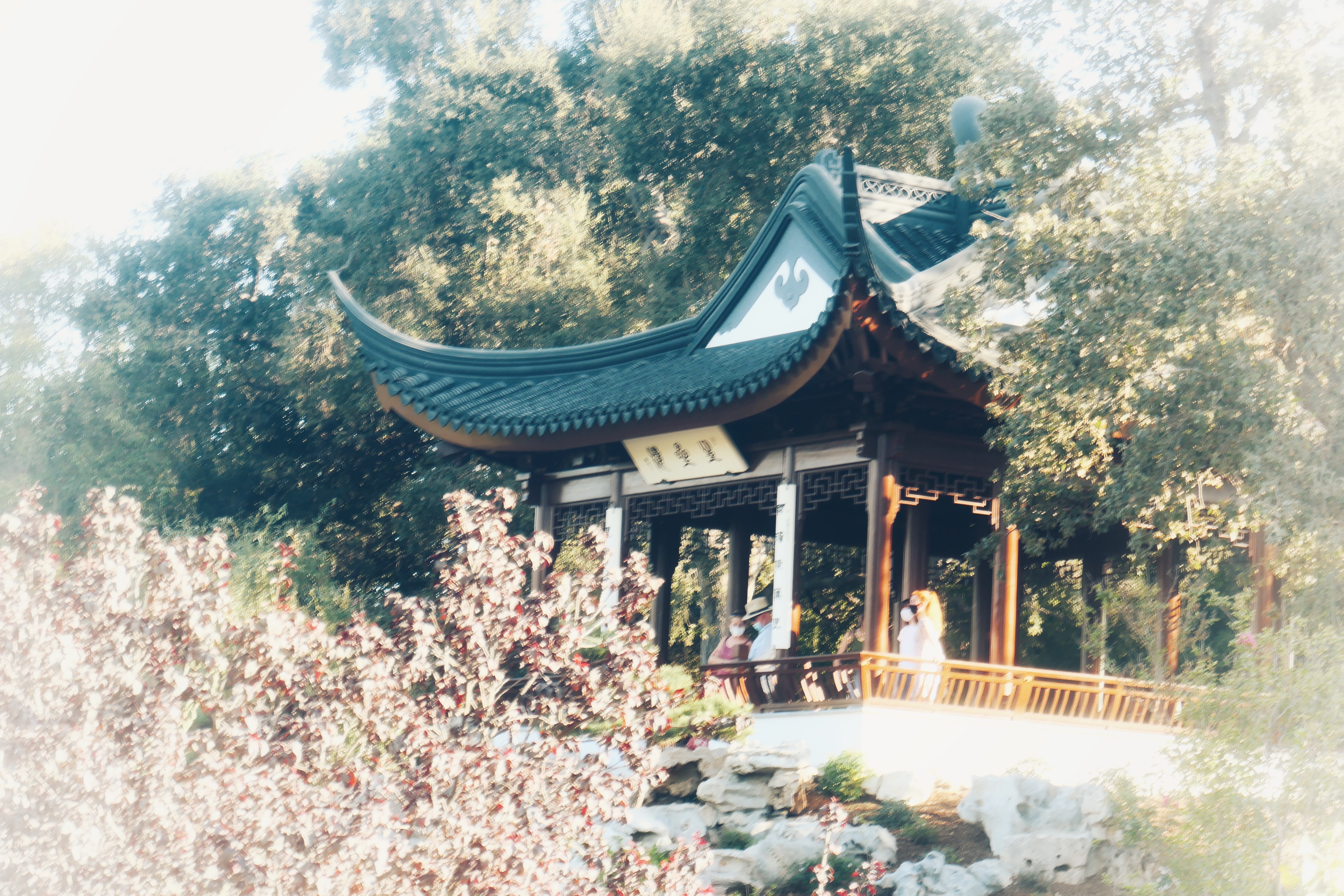 This corner of the garden is very moving for me. Embodying the perfect harmony of friends: beautiful Chinese garden pavilions and towering California oaks.