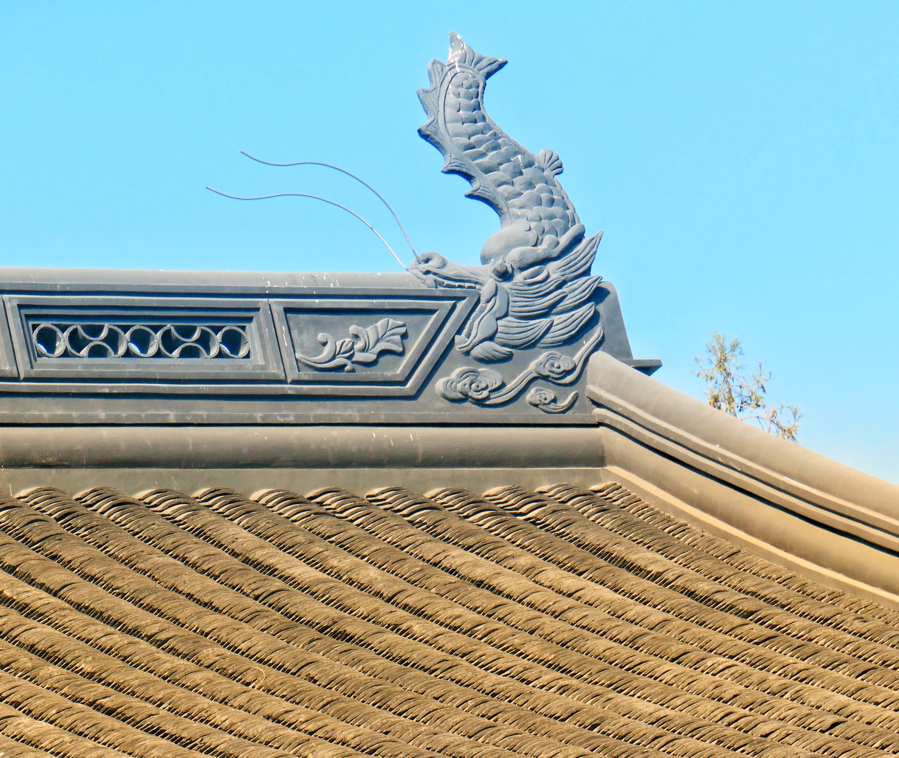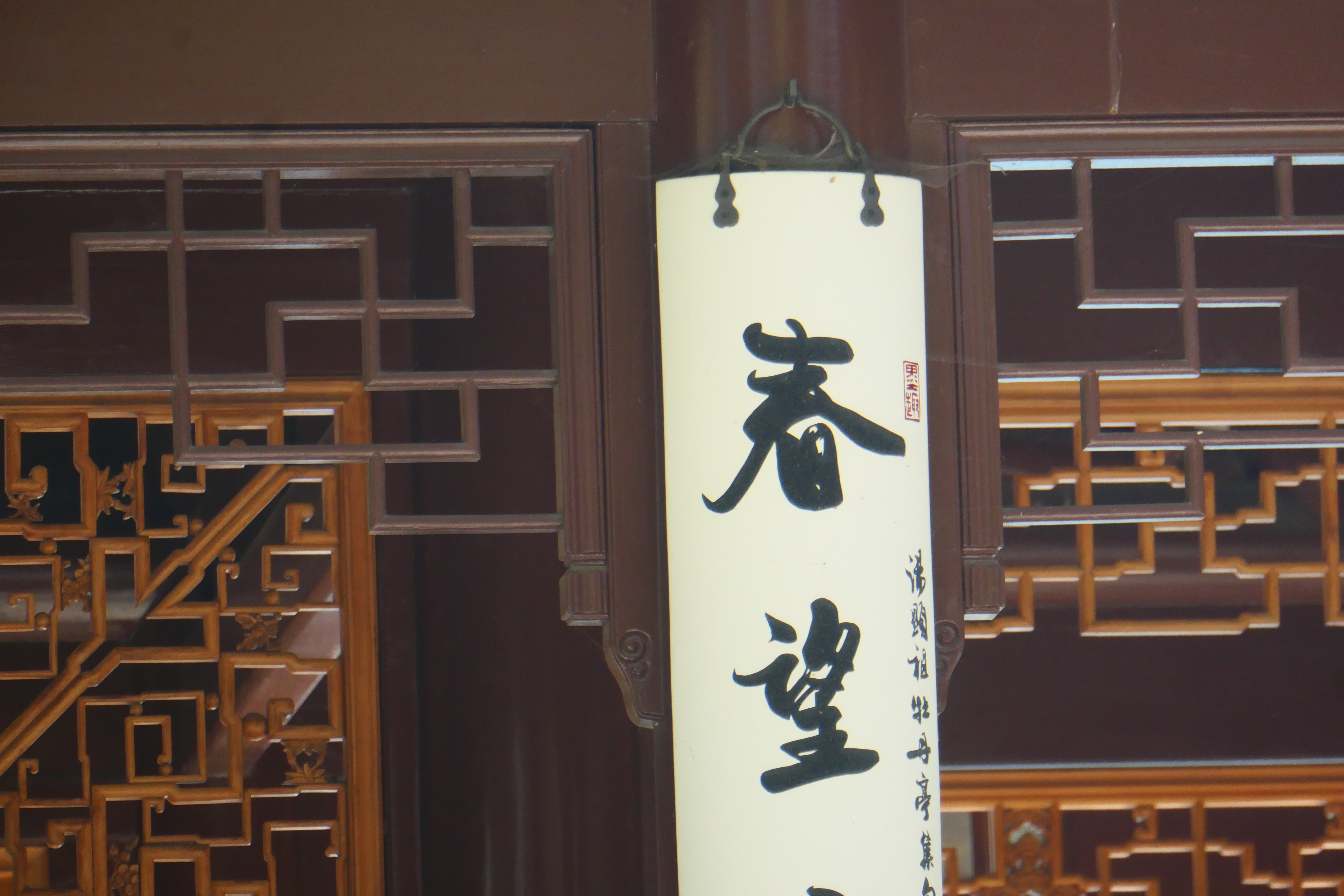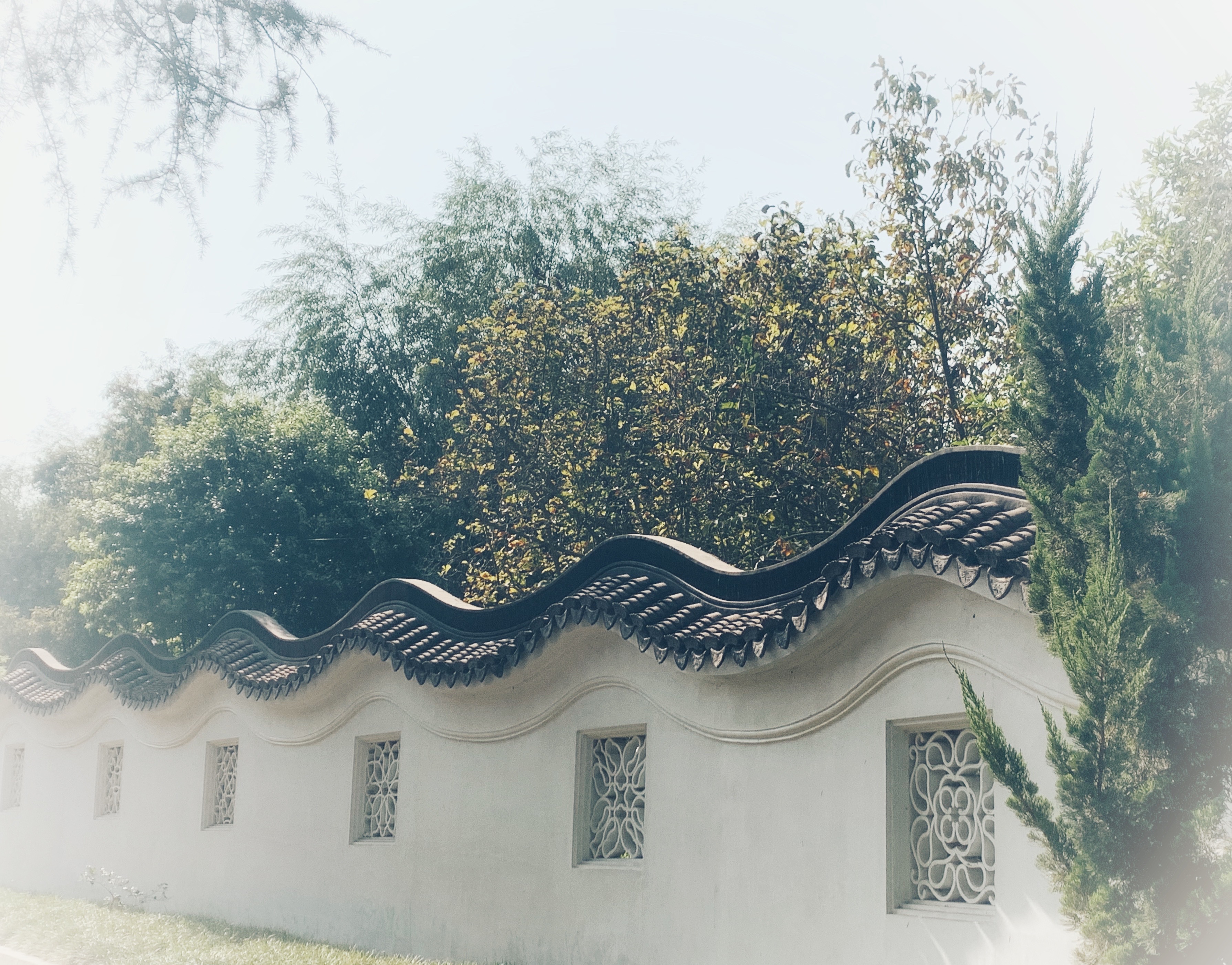 You approach the garden by walking along a dragon wall and there above the archway is the calligraphy of