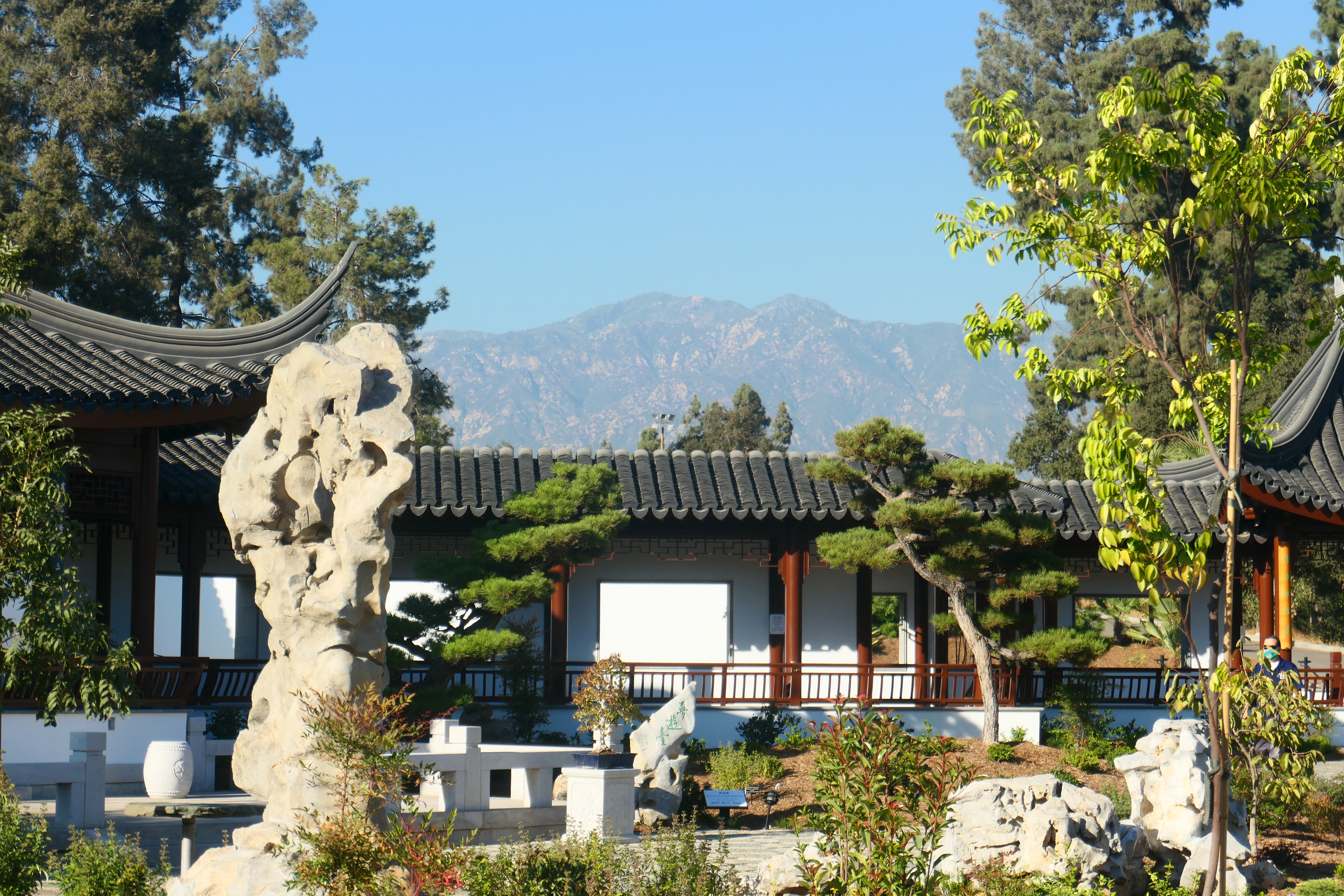Above is the Star Gazing Tower 望星樓, which is the highest point in the garden and affords sweeping views of Mt. Wilson and the domes.